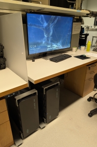 We have several workstations dedicated to viewing and processing of large, image datasets acquired with the facility's instruments, particularly the light sheet microscopes. A suite of imaging software (below), including a full version of Imaris, is installed on most of the workstations. Please contact us for assistance or to install additional software.