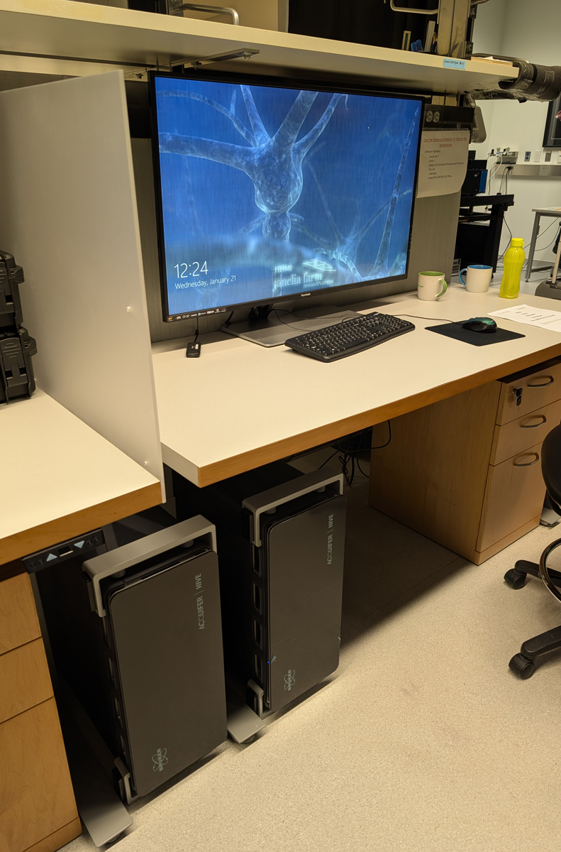 We have several workstations dedicated to viewing and processing of large, image datasets acquired with the facility's instruments, particularly the light sheet microscopes. A suite of imaging software (below), including a full version of Imaris, is installed on most of the workstations. Please contact us for assistance or to install additional software.