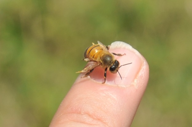 The bees are housed in wooden colonies in a field adjacent to the garden.