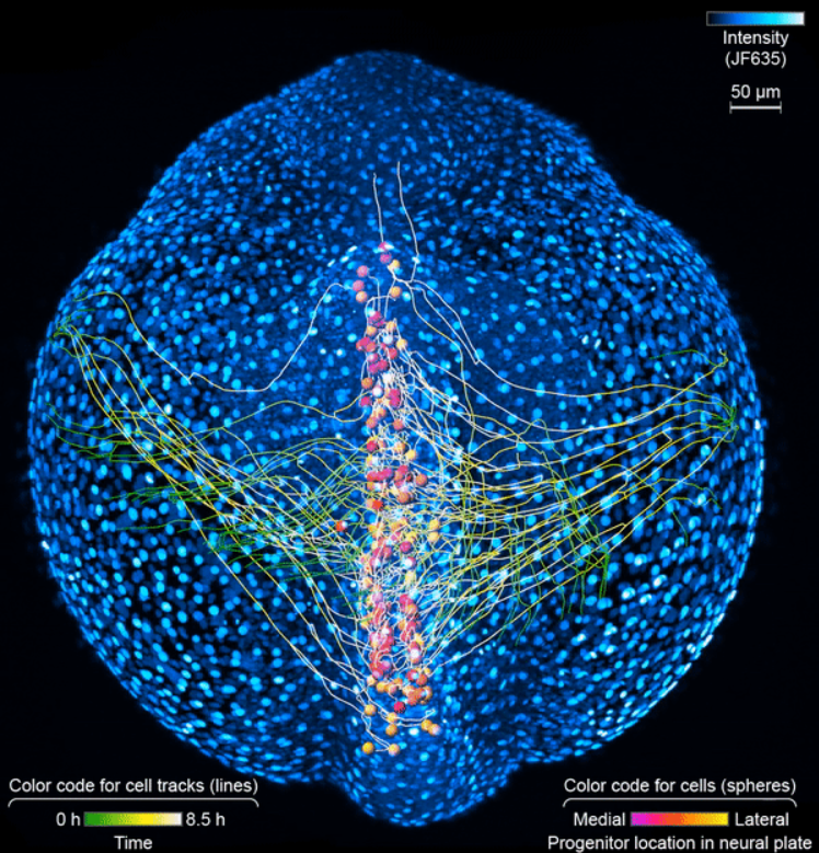 “You need technology that allows you to follow, at the single-cell level, the development of an entire embryo,” Keller says. It’s not too hard to find a microscope that can image a large area, or capture the tiniest details, or take pictures really fast. But usually those perks come with tradeoffs. For this experiment, Keller’s team needed a microscope that could do all those things at once, and on a fragile living organism, to boot. “You don’t want to make any compromises – it needs to be perfect,” he says.